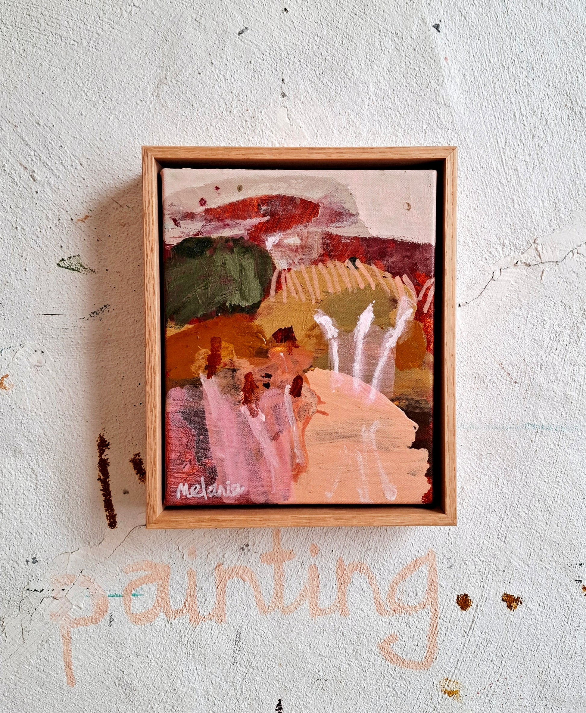 This is a new smaller original painting that is framed in an Oak floating timber frame.