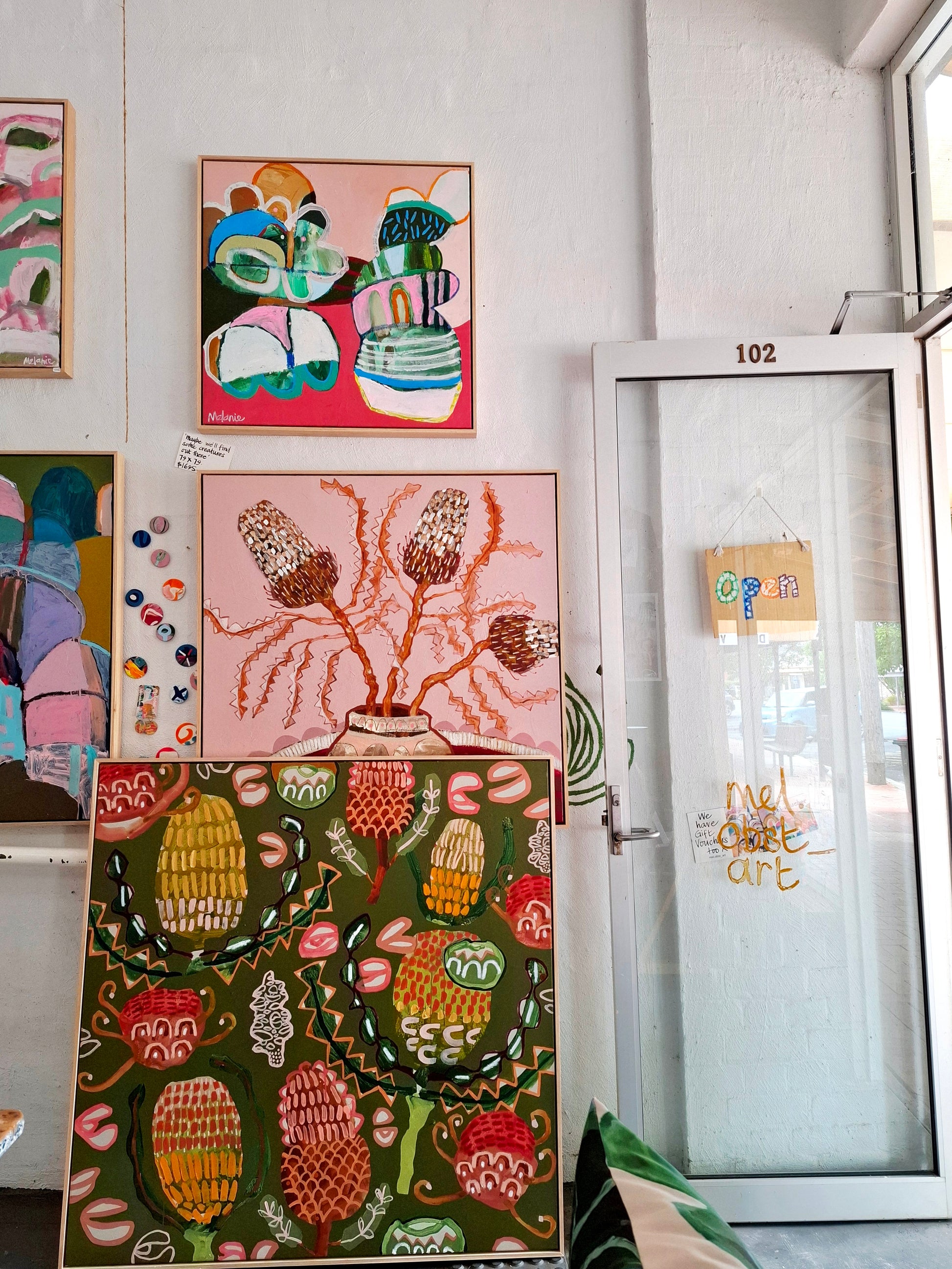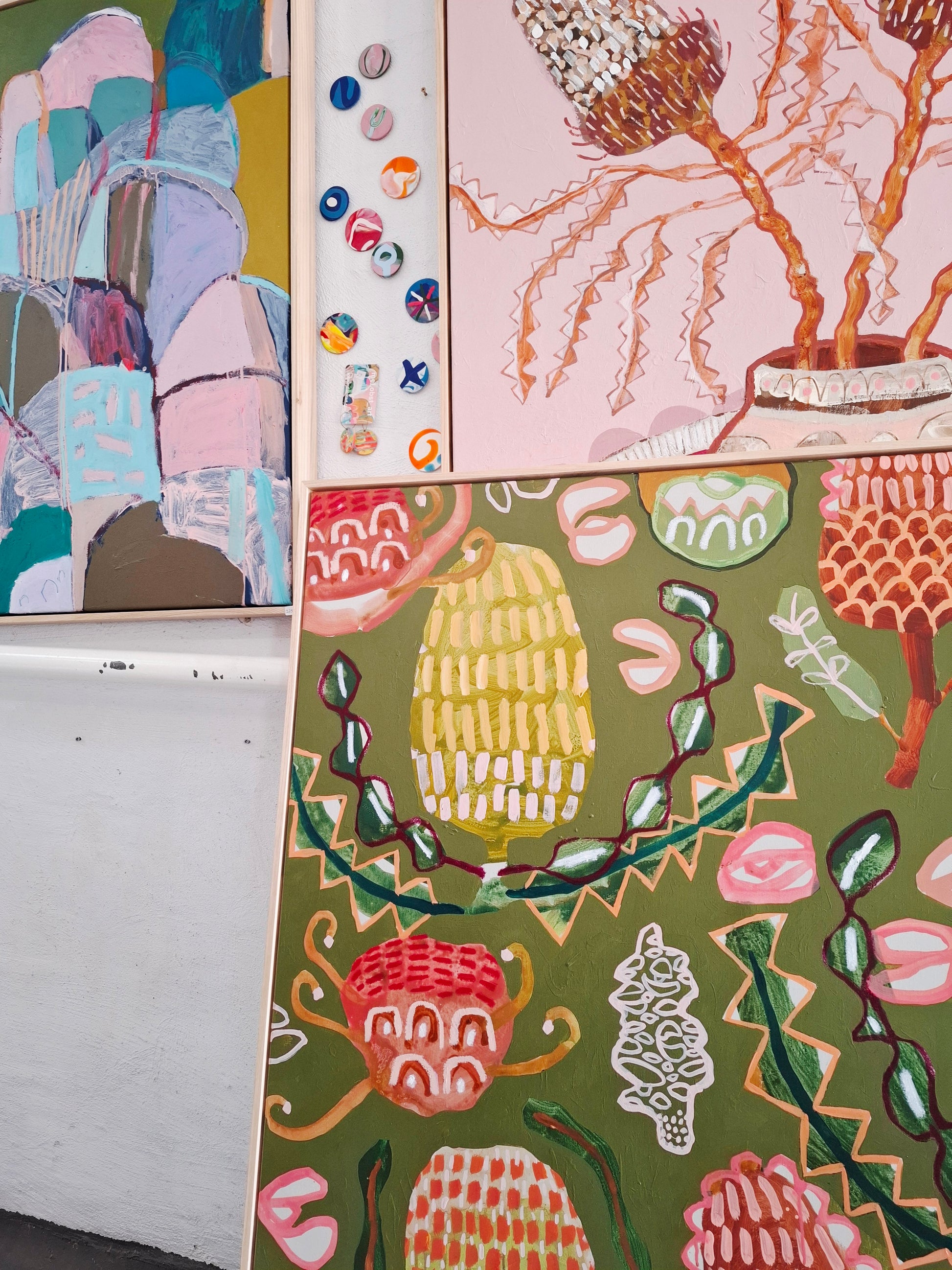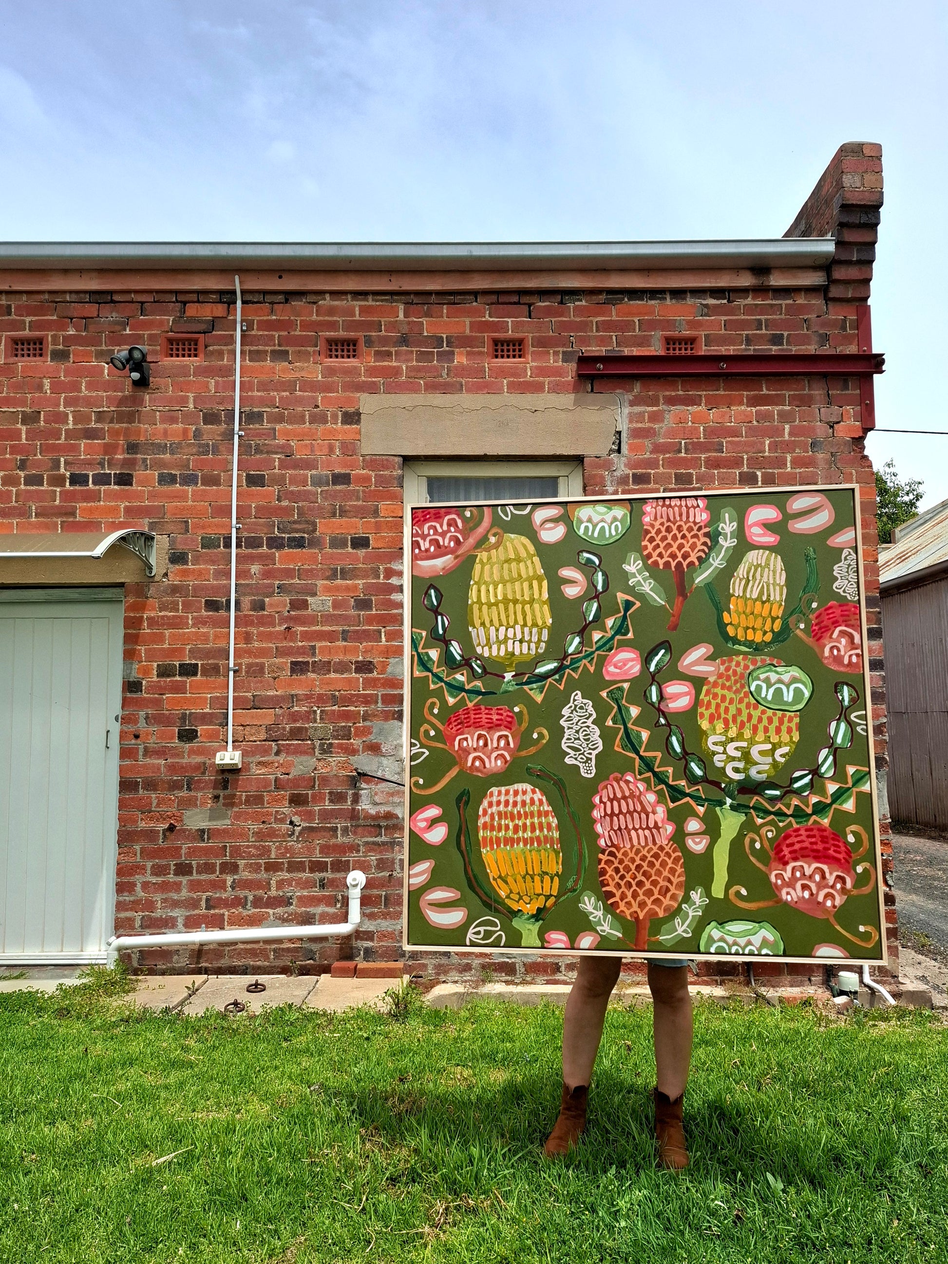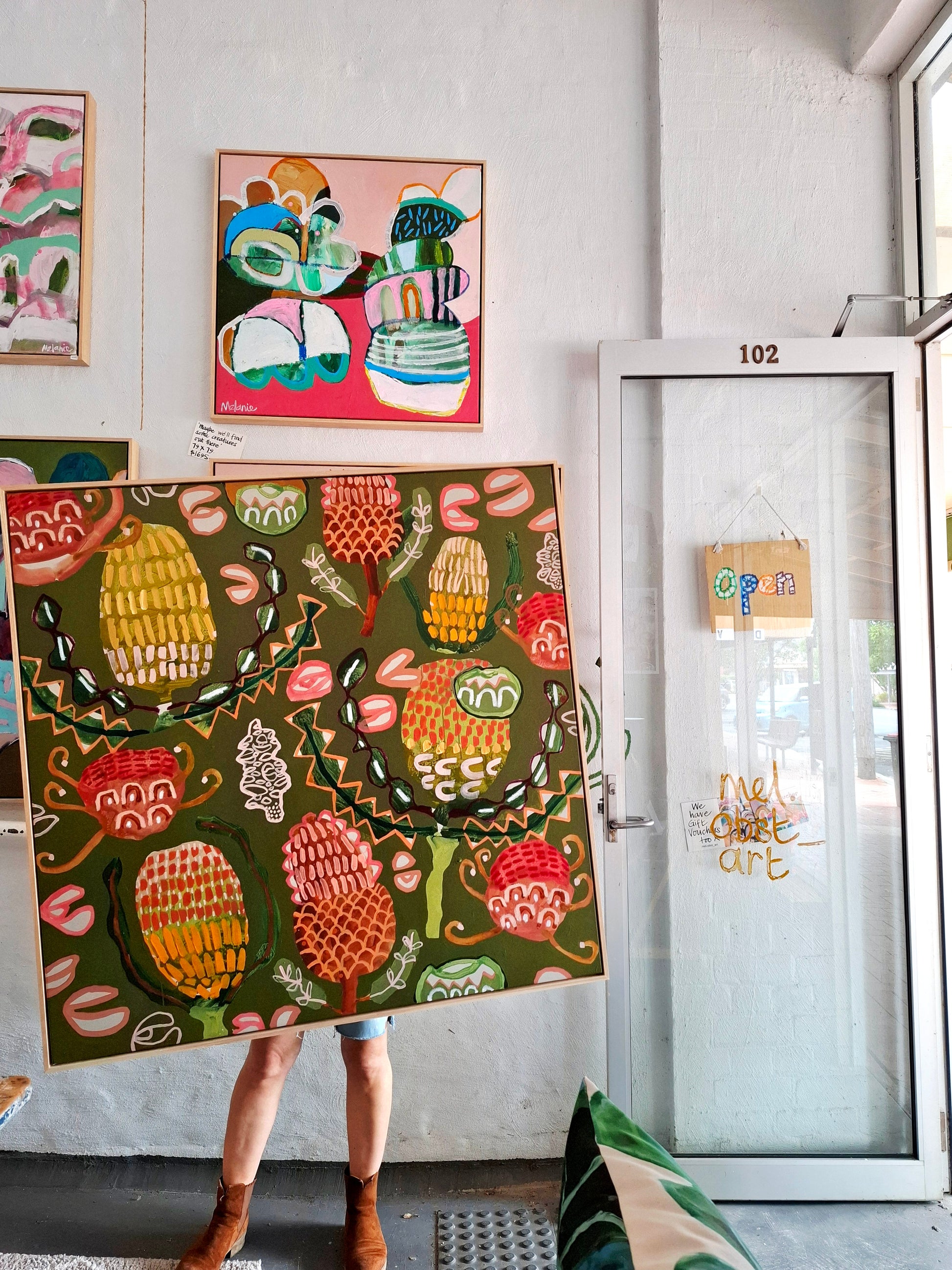 This is a new large original painting that is framed in an American Ash floating timber frame.