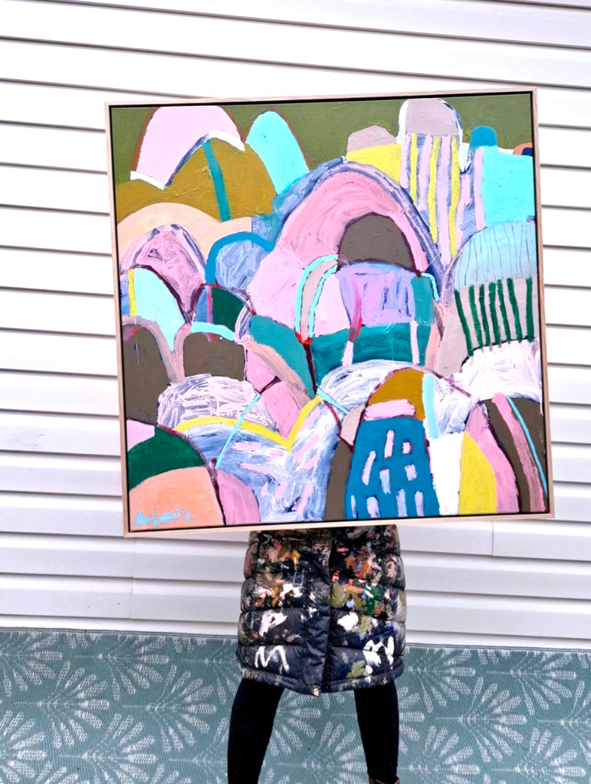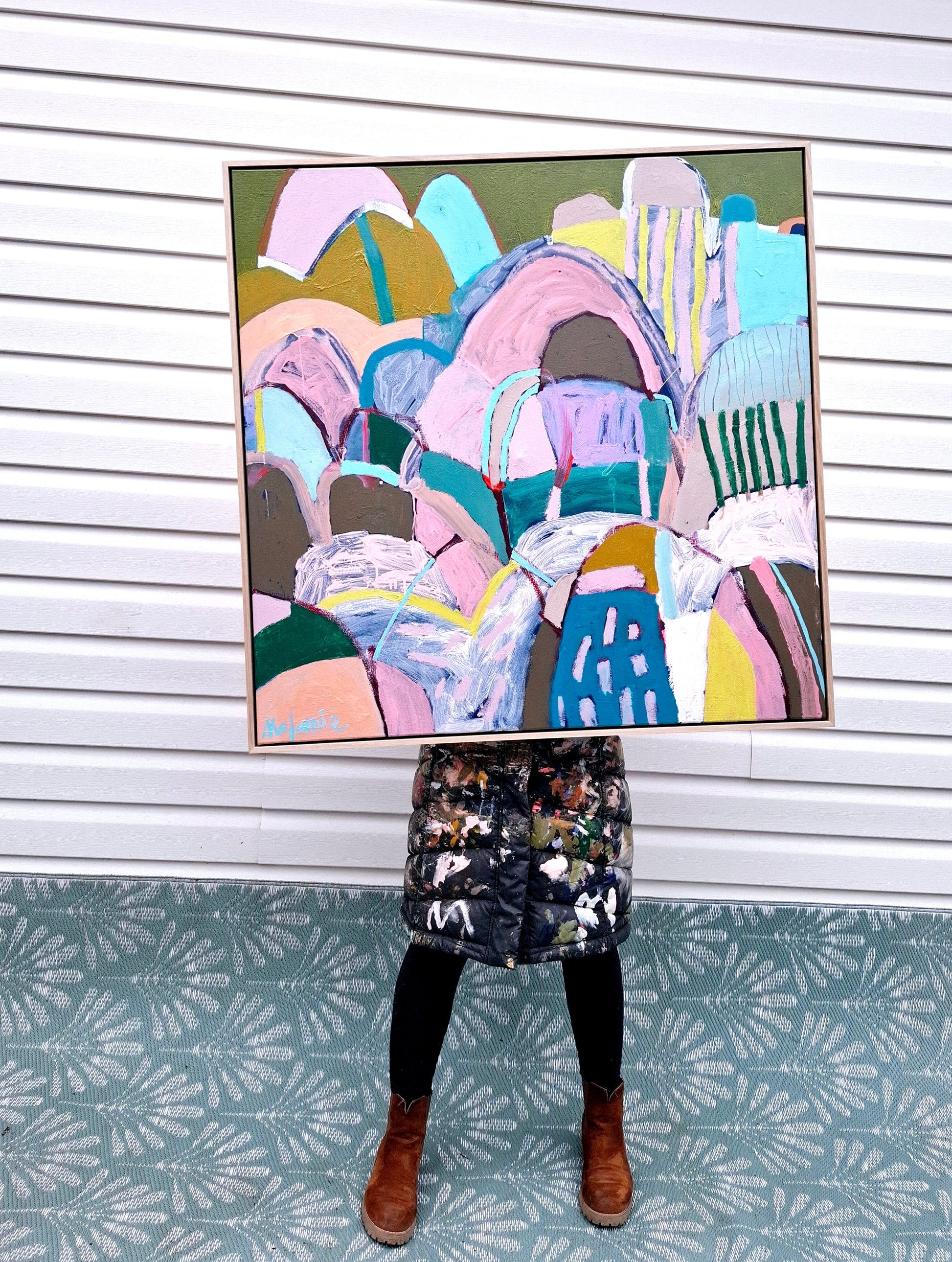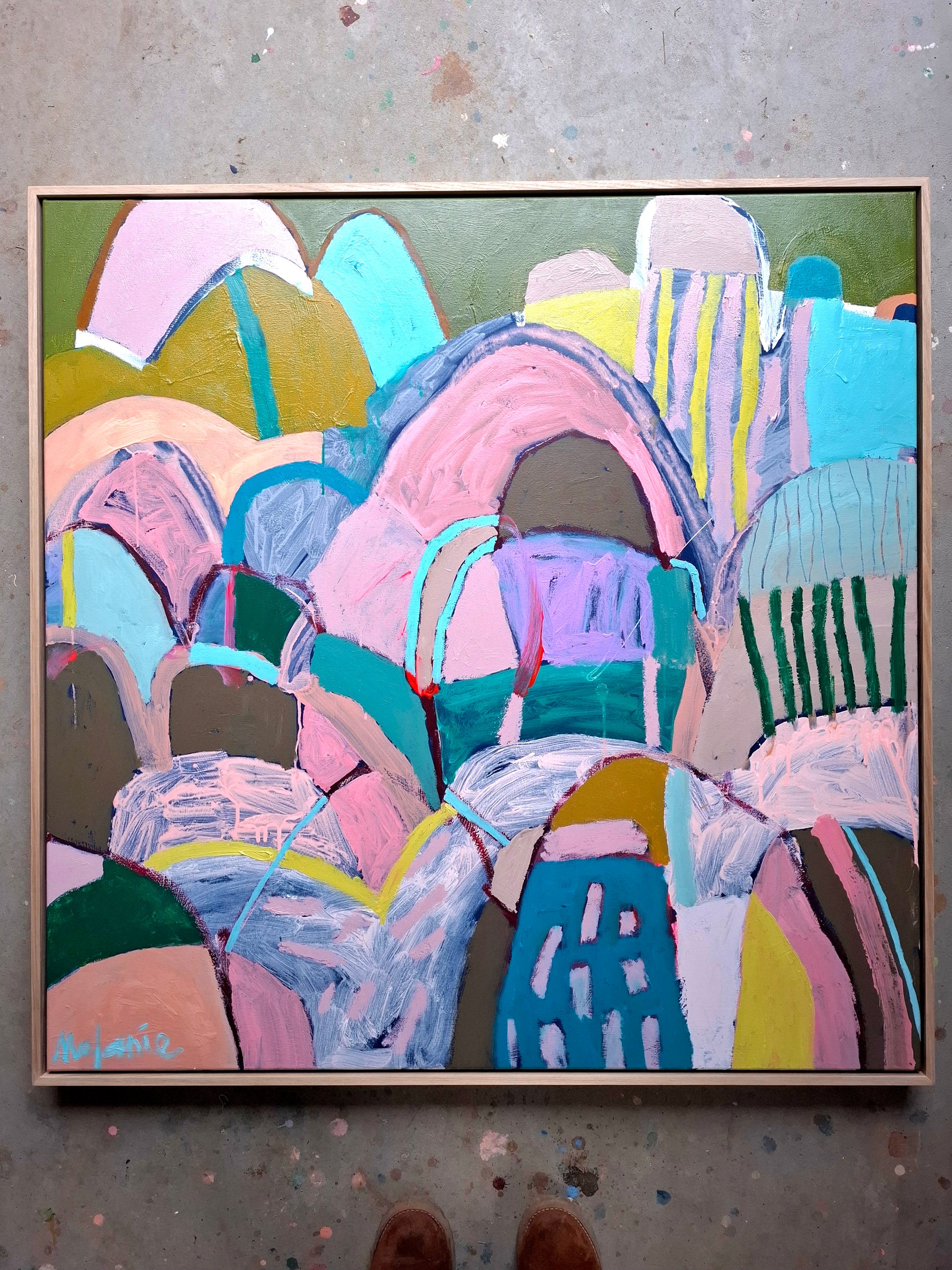 This large original painting is framed in an American Ash floating timber frame.
