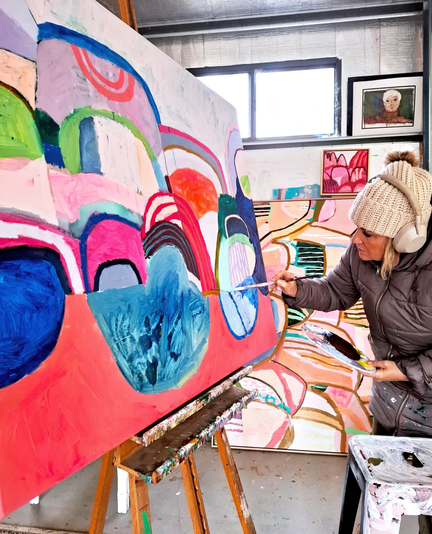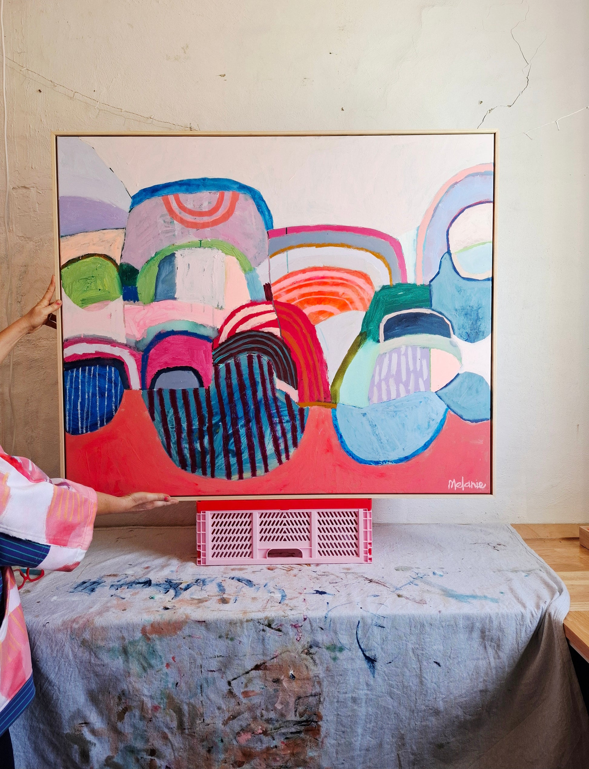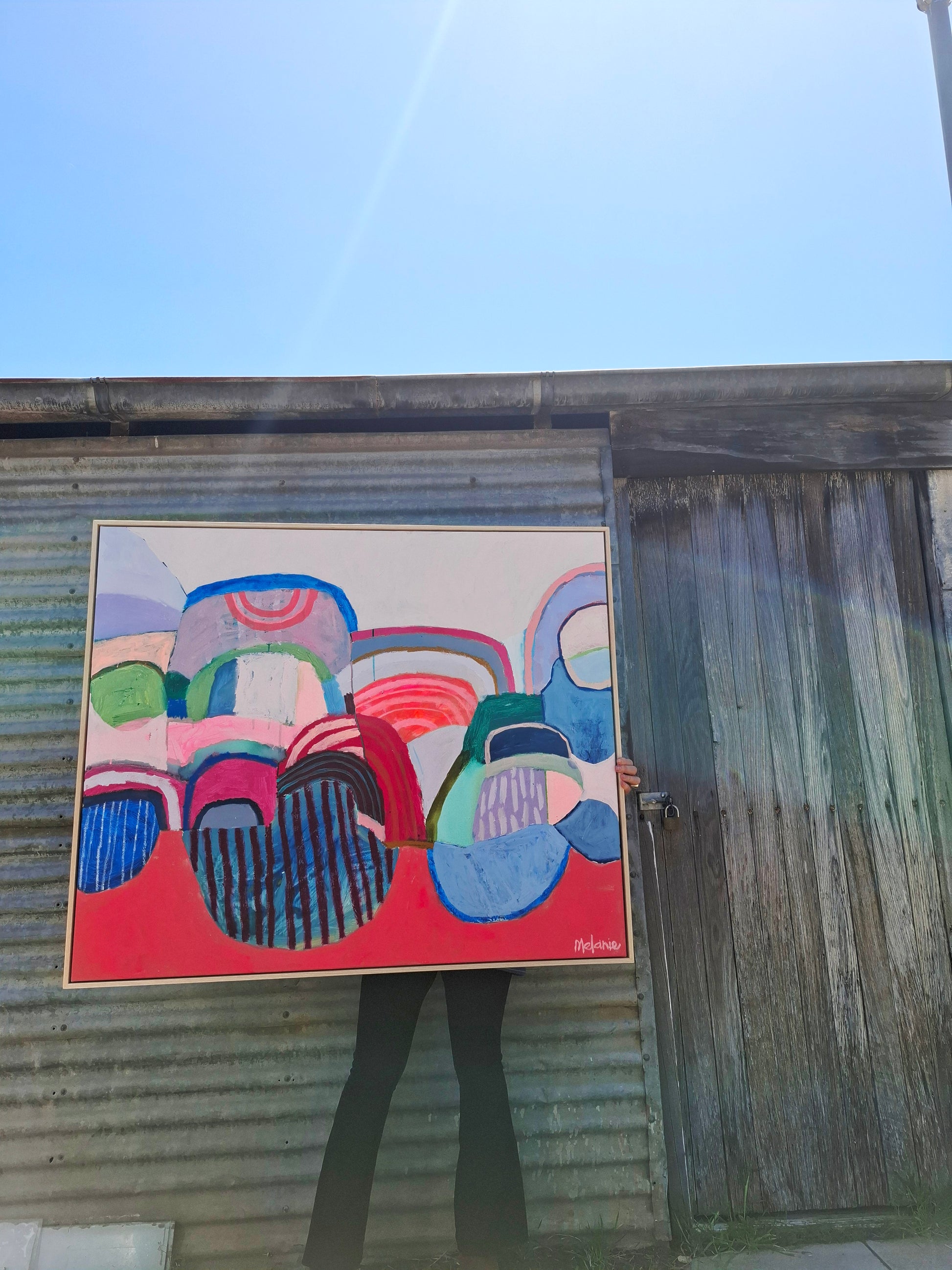 This is a large original painting that is framed in an American Ash floating timber frame.