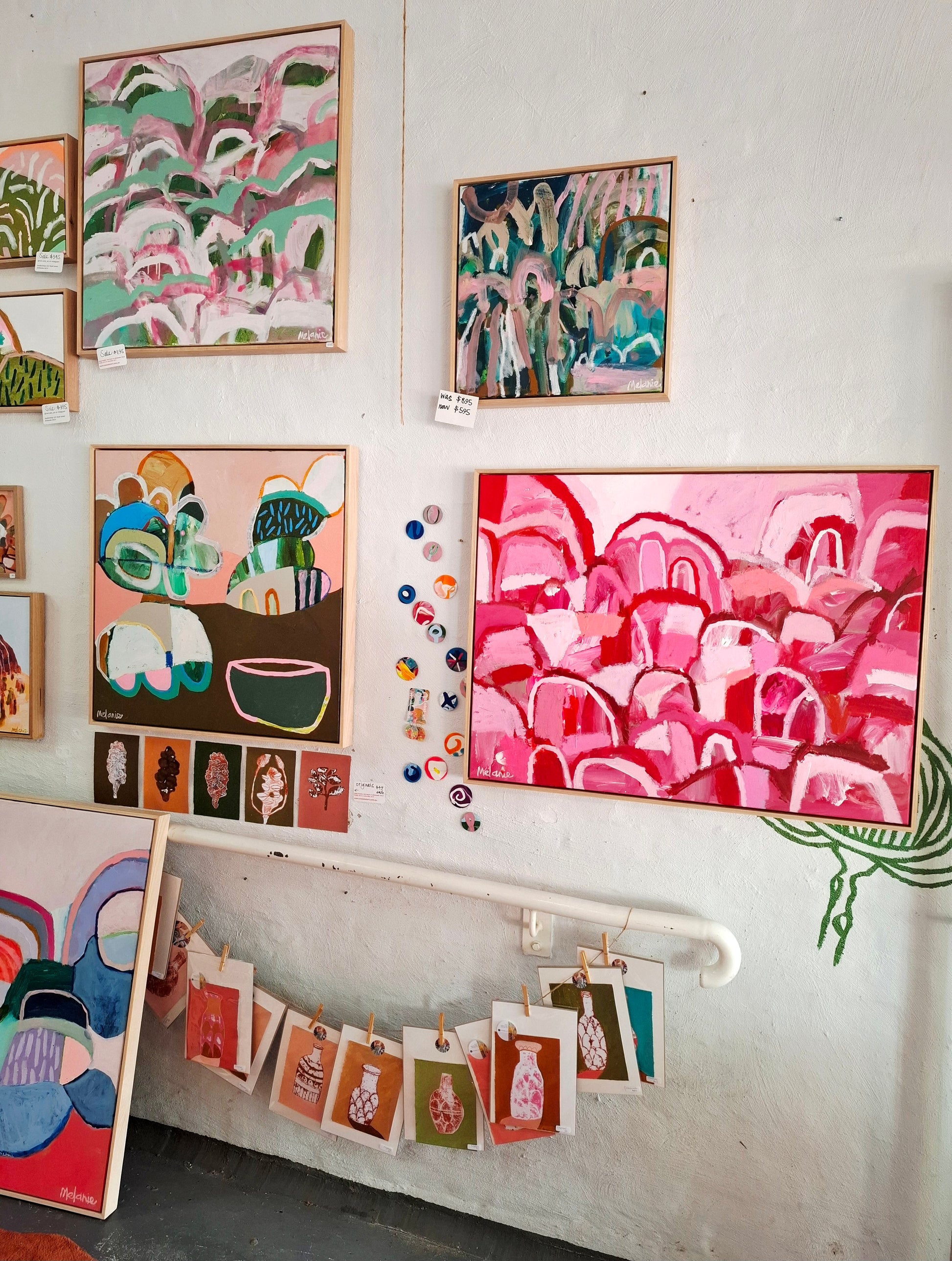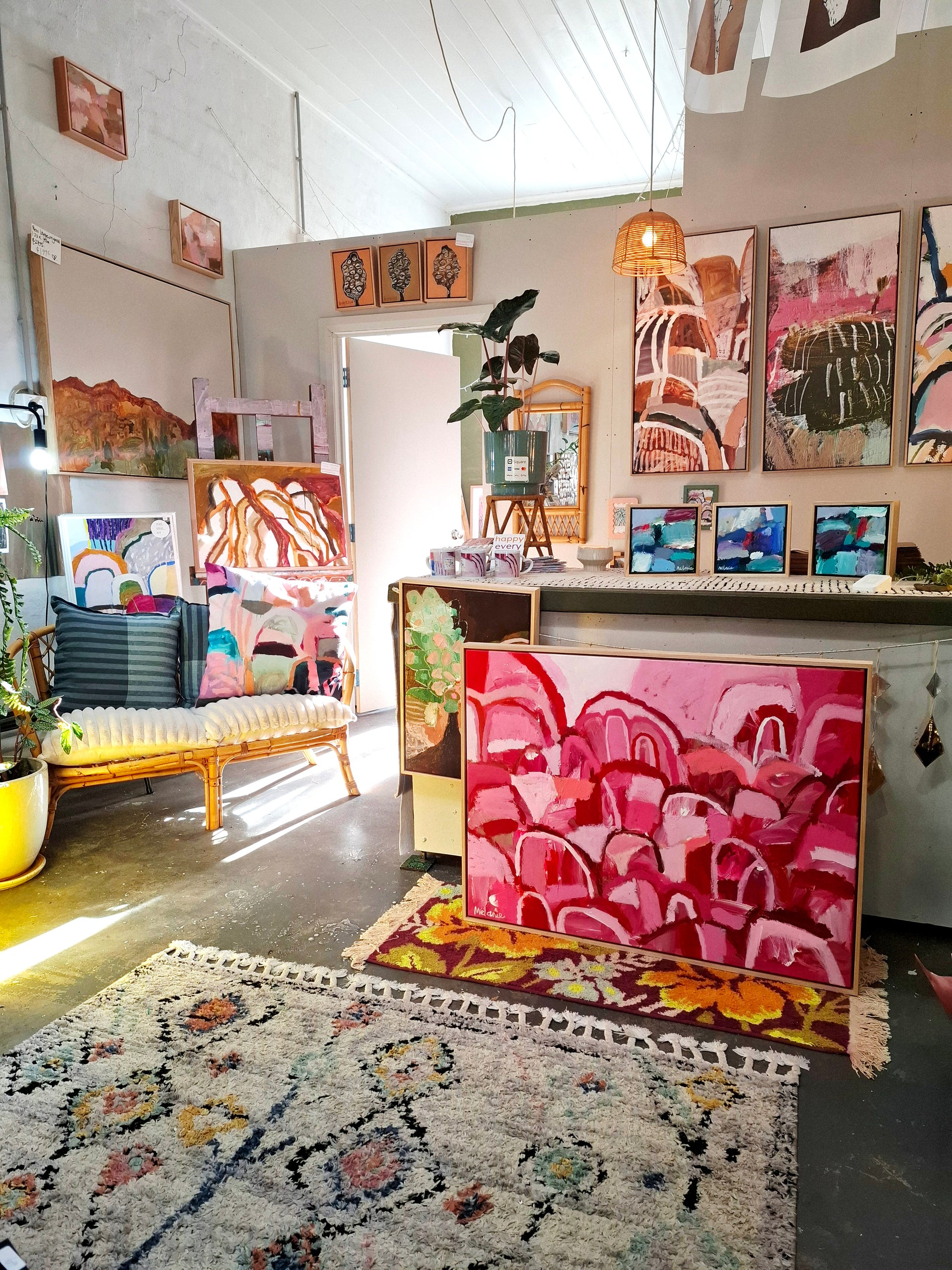 This is a new large original painting that is framed in an American Ash floating timber frame.